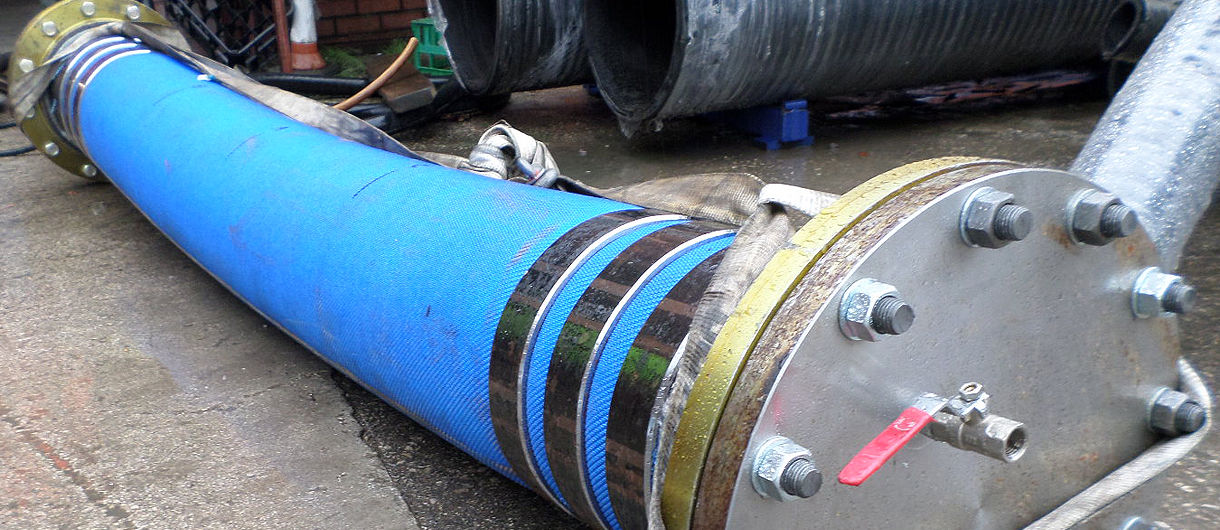 24" Water suction and discharge hose assemblies with triple band swaged ASA150 Flanged fittings