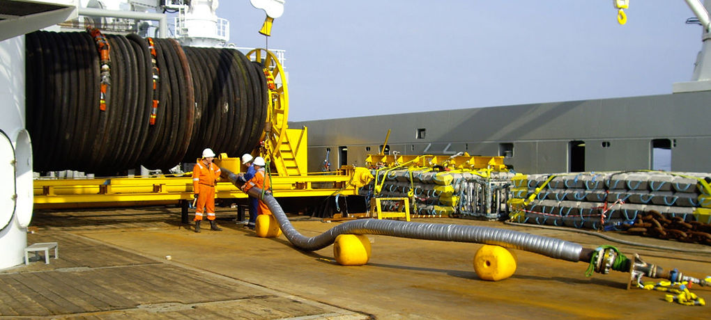 6" fuel handling hose assemblies with field-fittable ends reeled onto hydraulic reelers