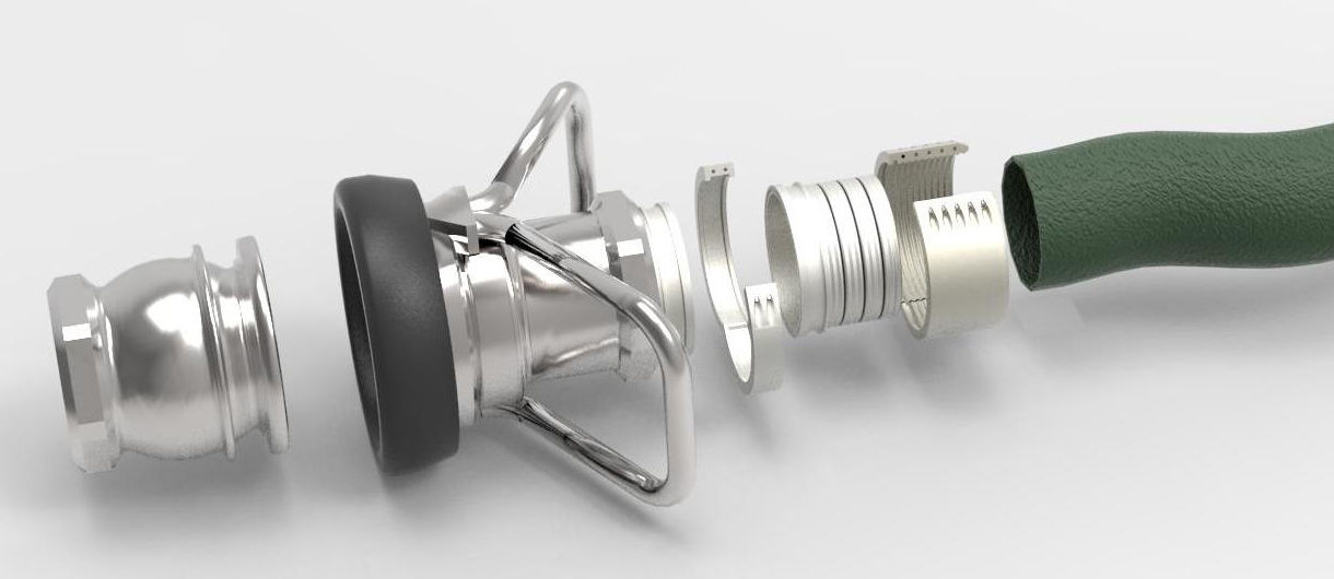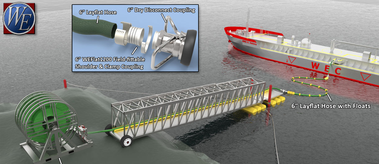 Layflat fuel hose with field-fittable camlock and threaded fittings using our WEFlat coupling system in Hard Anodized alloy